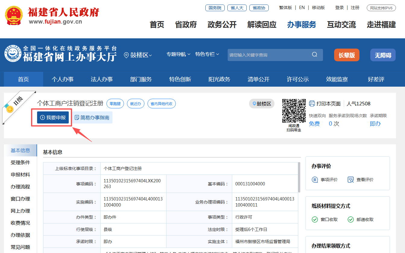 1.登錄“福建省網上辦事大廳”,定位到福州市鼓樓區(qū),如下圖所示: