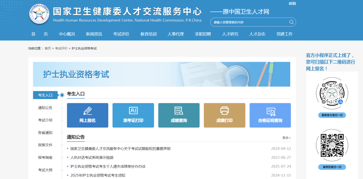國家衛(wèi)生健康委人才交流服務(wù)中心 > 護士執(zhí)業(yè)資格考試 > 考試入口